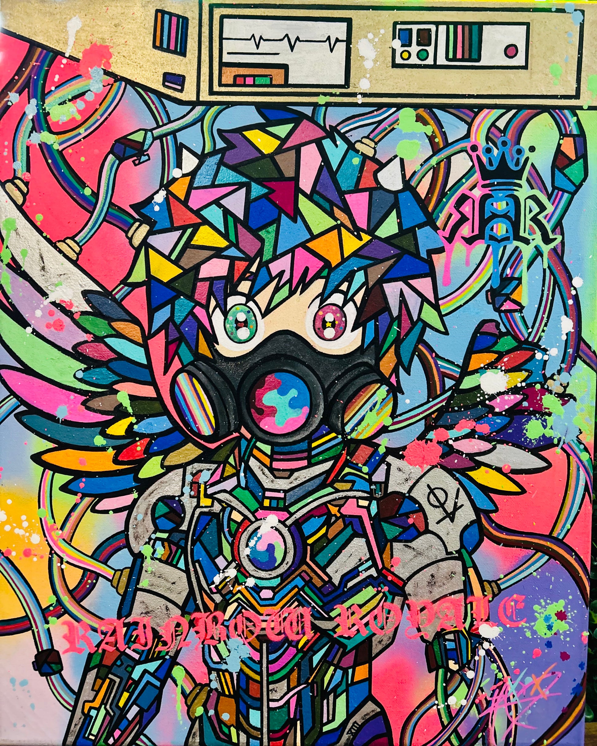 We are strong, even with a broken wing and a broken arm. The painting captures the fragile tension between loss and resilience. Even through the fractured arm and torn wing, we all possess the strength to heal. The piece reminds us that even a shattered machinery can hold light. Beauty often emerges through the cracks of imperfection